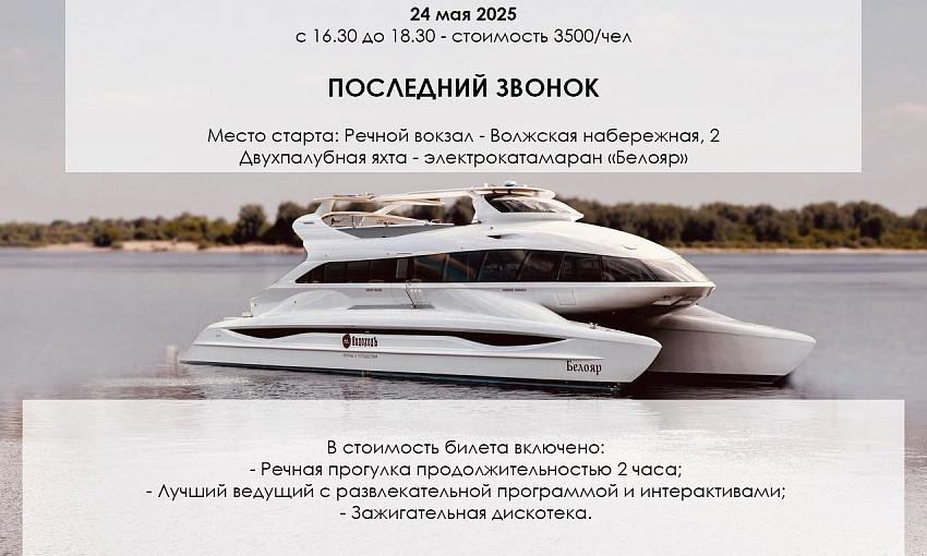 24 мая 2025 года состоится речная прогулка «Последний звонок» для выпускников на двухпалубном электрокатамаране «Белояр». Она станет отличным завершением учебного года!