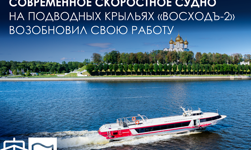 Современное скоростное судно на подводных крыльях «ВосходЪ-2» возобновил свою работу! СПК «ВосходЪ-2» осуществляет ежедневные рейсы по маршруту Ярославль — Тутаев — Рыбинск и обратно.