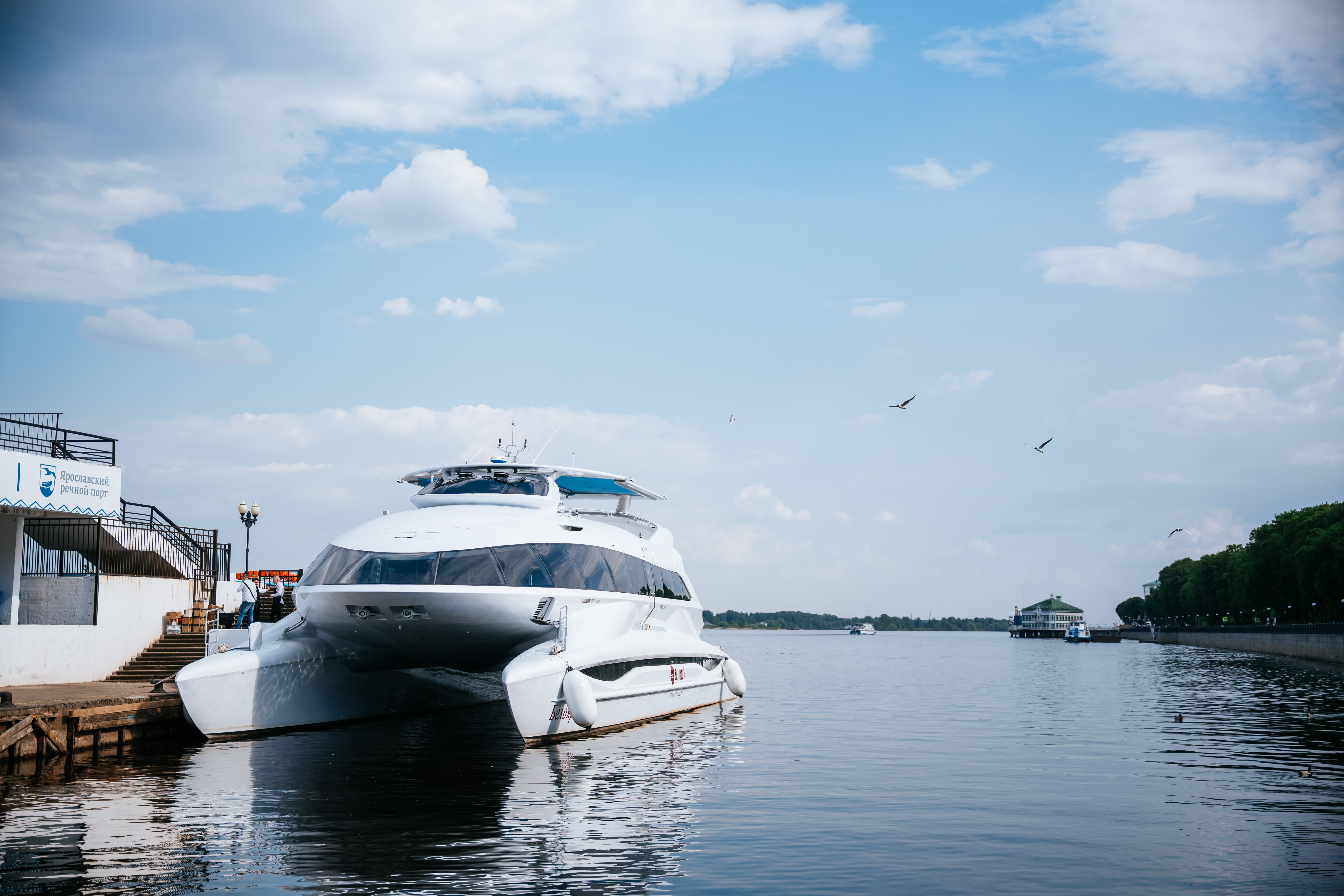 Место старта: Речной вокзал — Волжская набережная, 2. Двухпалубная яхта — электрокатамаран «Белояр».